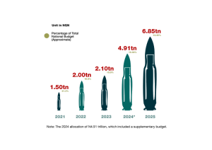 The total allocation to the national security and defence sector, encompassing the Ministry of Defence, Ministry of Police Affairs, Office of the National Security Adviser (ONSA), and others, has shown an alarming upward trajectory: